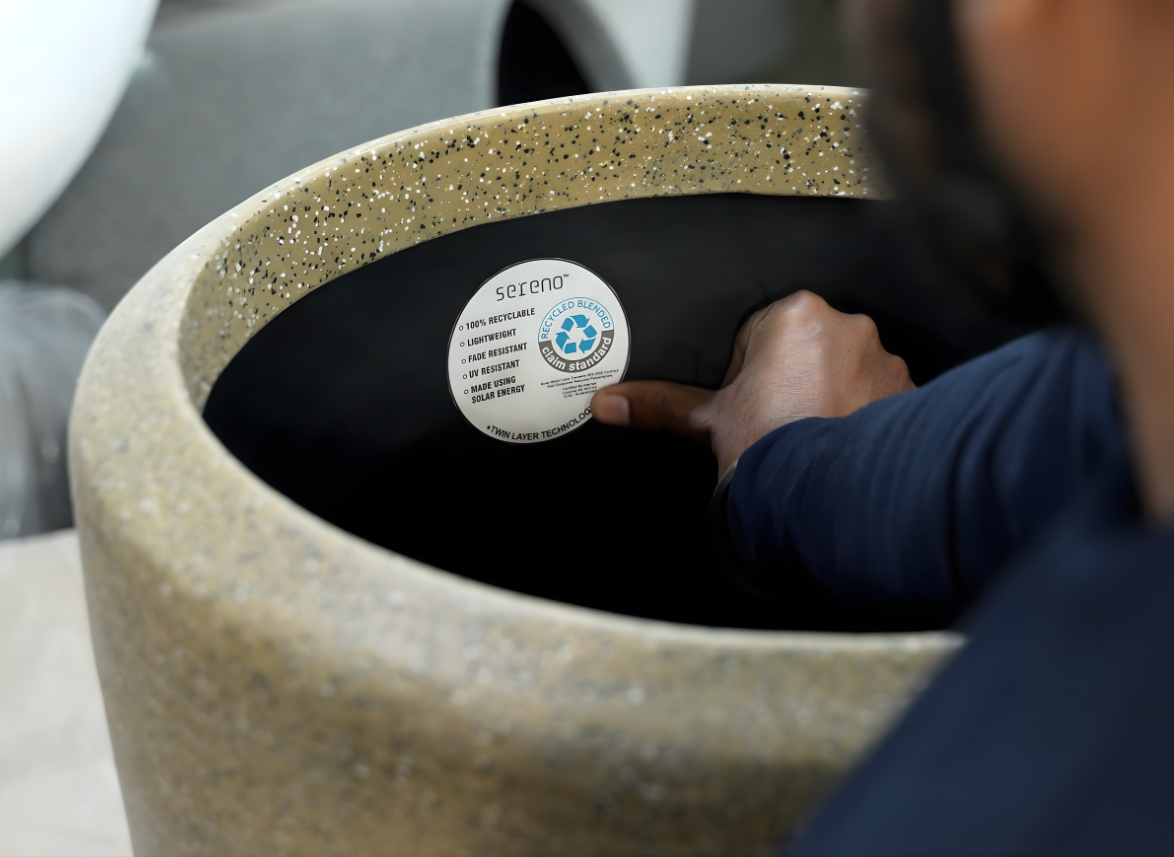 The Inner black layer of the Sereno Planters constitutes 30% recycled material.
